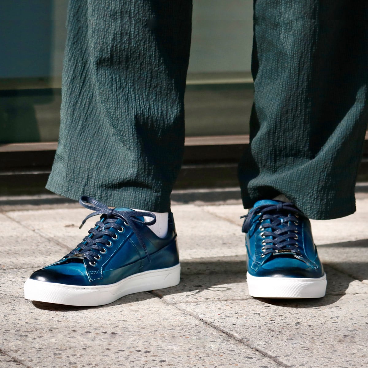 スマートなシルエットでエレガントな雰囲気を醸し出すレザースニーカー。
