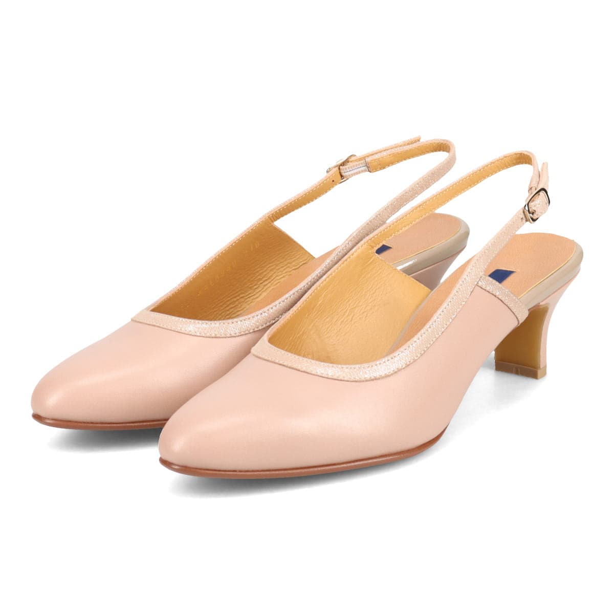 足がすっきり綺麗に見えるアーモンドトゥのバックバンドパンプスは、オフィスからオケージョンまで幅広いシーンに対応。シンプルながら計算されたカッティングと華奢なベルトが足元を美しく演出します。