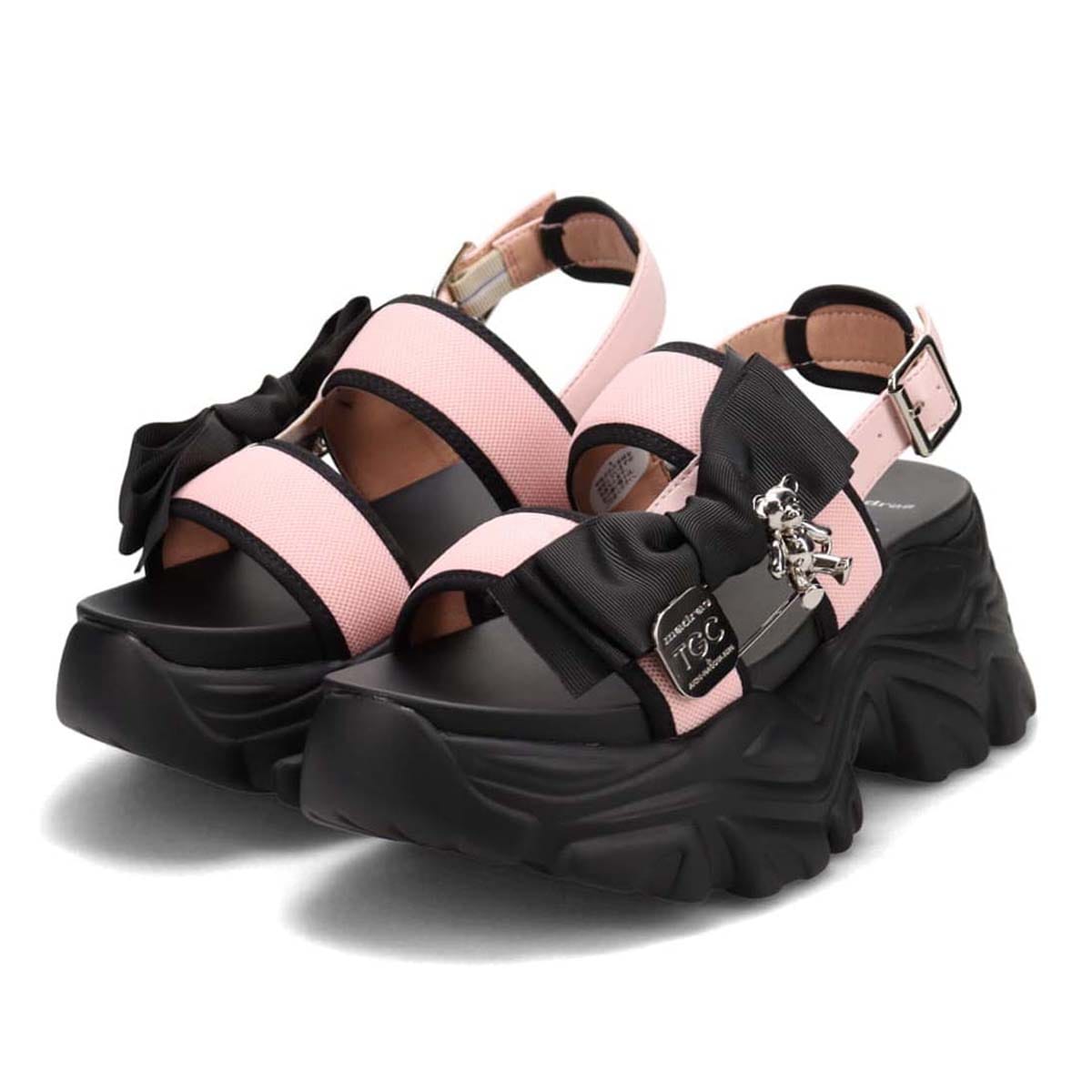 輝くくまちゃんとリボンの組み合わせで、足元から映えを約束する厚底カジュアルサンダル