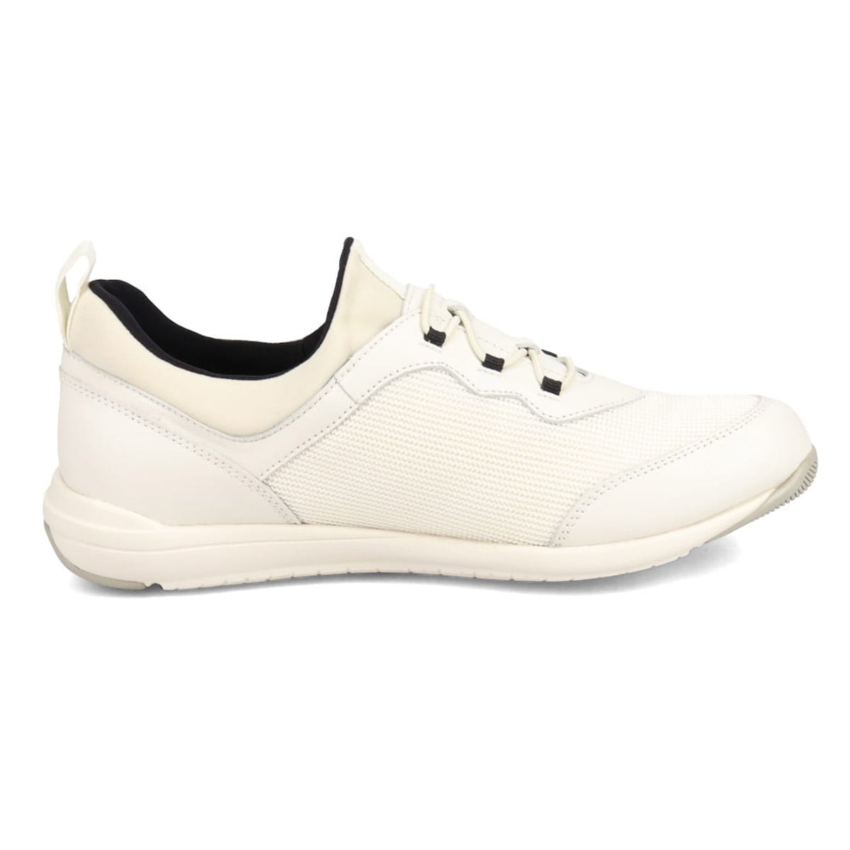 ソフトなストレッチ素材を履き口に使用したレースアップ風スリッポンシューズ。