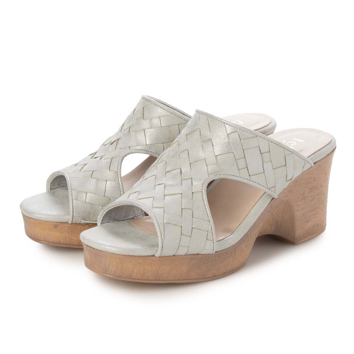 「手差しメッシュ」を贅沢に使用した、tehenのエレガンスミュール。ナチュラルなWOOD調のプラットフォームと、丁寧に編み込まれたメッシュ素材が織りなすコントラストは、大人の夏を彩る至高のデザイン。見た目以上の軽やかさと、足を優しく包み込む感覚をぜひ体感してください。