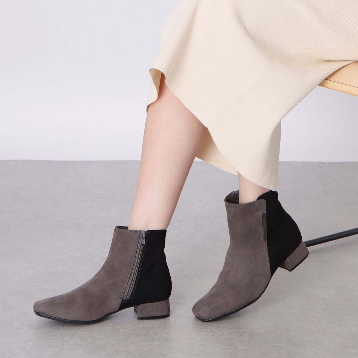 【撥水加工】テーン tehen スクエアトゥショートブーツ|きらり金具がアクセント◎上品×歩きやすい大人のきれいめブーツ スクエアトゥショートブーツ TN6704