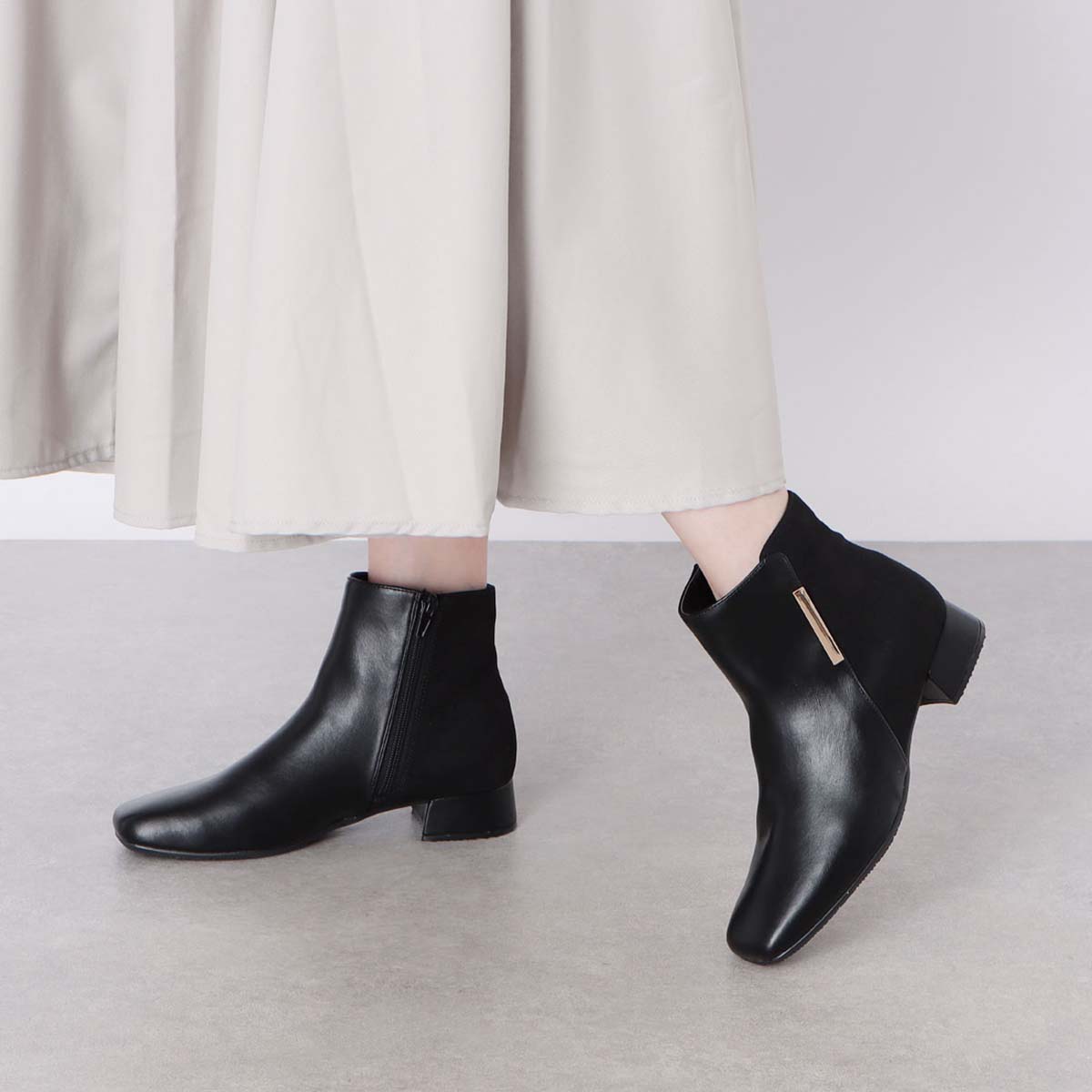 【撥水加工】テーン tehen スクエアトゥショートブーツ|きらり金具がアクセント◎上品×歩きやすい大人のきれいめブーツ スクエアトゥショートブーツ TN6704
