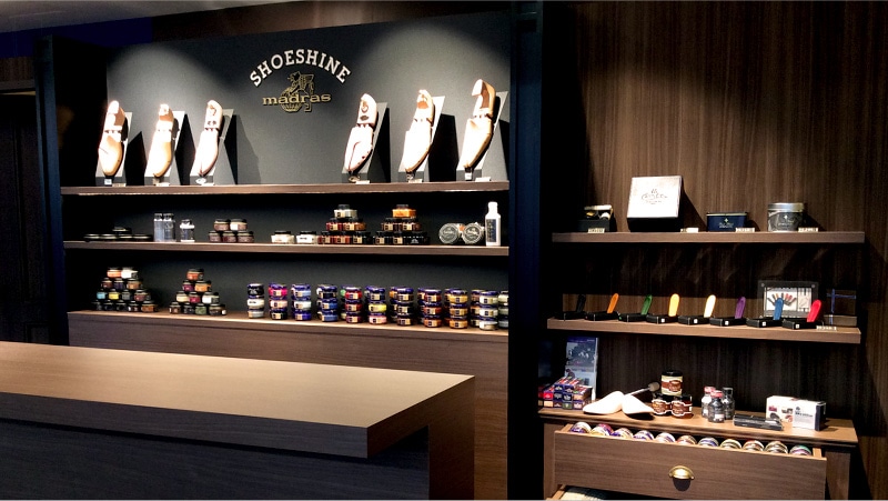 直営店の中でも大型店舗となり、madras、MODELLO、madras Walkなどの主要ブランドをはじめ、オーダー靴、革小物など多くのラインナップを揃えています。